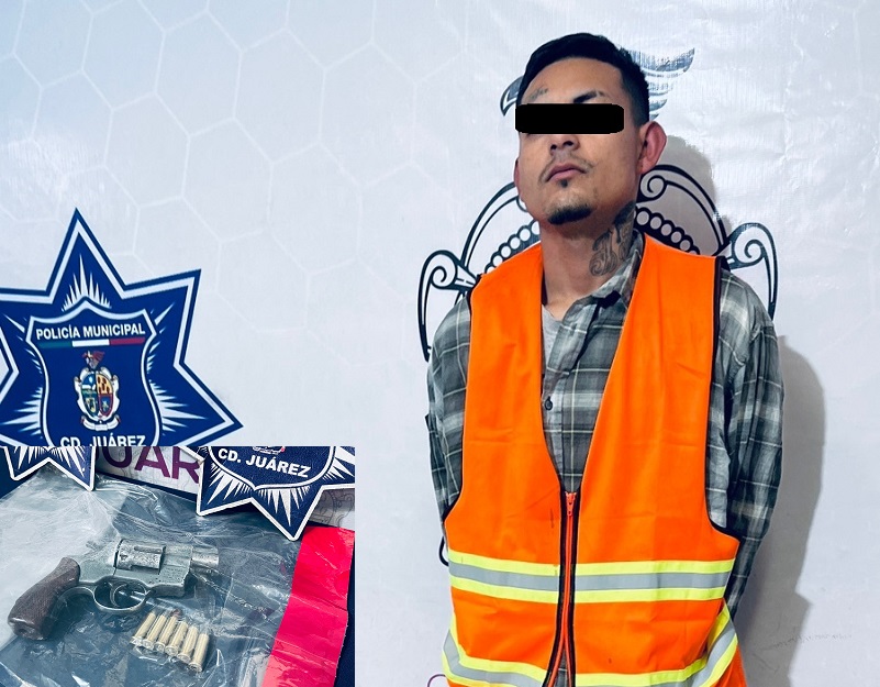 Ciudad Juárez, Chihuahua – Elementos de la Secretaría de Seguridad Pública Municipal arrestaron a Julián Ramón F. R. por su presunta responsabilidad en la comisión de delitos contra la ley federal de armas de fuego y explosivos.