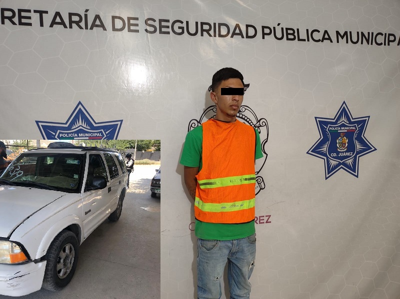 Ciudad Juárez, Chihuahua – Elementos de la Secretaría de Seguridad Pública Municipal arrestaron a Uriel N. M., por su presunta responsabilidad en la comisión del delito de posesión de vehículo con pre reporte de robo.