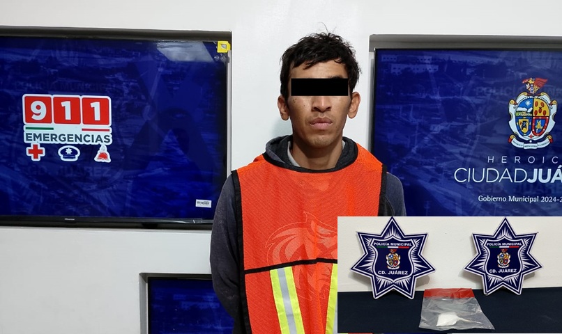Ciudad Juárez, Chihuahua – Agentes de la Secretaría de Seguridad Pública Municipal, adscritos a la Estación de Policía del Distrito Valle, realizaron la detención de Luis Alberto G. L., por su presunta responsabilidad en la comisión de delitos contra la salud, mismo que será investigado por su posible participación en robos con violencia a establecimientos comerciales.