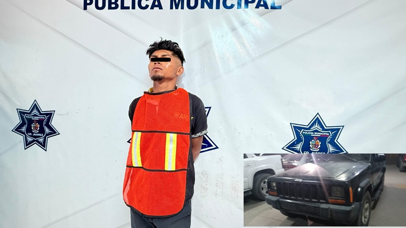Ciudad Juarez, Chihuahua – Elementos de la Secretaría de Seguridad Pública Municipal arrestaron a Luis Javier J. R., por su presunta responsabilidad en la comisión del delito de posesión de vehículo con reporte de robo.