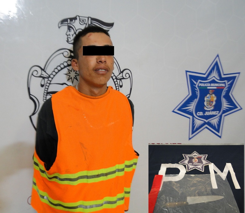 Ciudad Juárez, Chihuahua – Agentes de la Secretaría de Seguridad Pública Municipal arrestaron a Irwin Rafael S. R., por su presunta responsabilidad en la comisión del delito de robo a transeúnte.