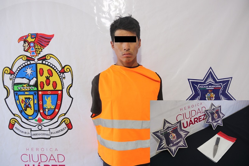 Con los datos proporcionados se realizó la búsqueda del responsable logrando ubicarlo calles más adelante del mismo fraccionamiento, por lo que, al ser reconocido plenamente procedieron con su detención, asegurándole en ese momento el arma blanca que había utilizado.