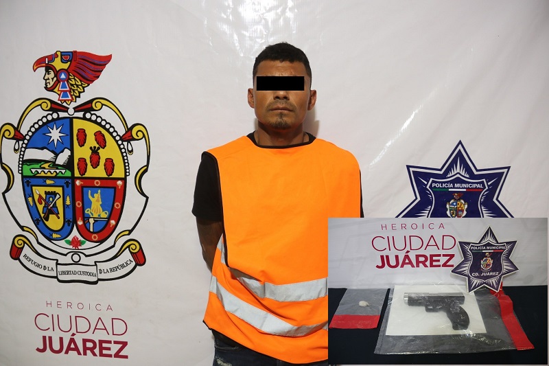 Con los datos proporcionados implementaron acciones de búsqueda logrando ubicar a un masculino quien reunía las características aportadas, motivo por el cual le marcaron el alto en el cruce de las calles Satevó y Ramón Rayón, en la colonia Villas Residencial del Real, y al realizarle una inspección preventiva le localizaron una pistola que resultó ser de postas y una dosis de cristal, procediendo con su detención.