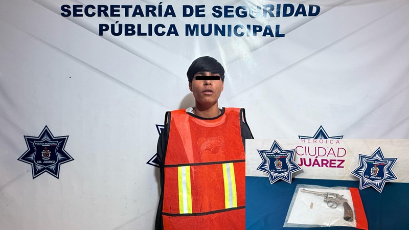 Ciudad Juarez, Chihuahua – Elementos de la Secretaría de Seguridad Pública Municipal arrestaron a Daniel M. F., por su presunta responsabilidad en la comisión de delitos contra la ley federal de armas de fuego y explosivos.