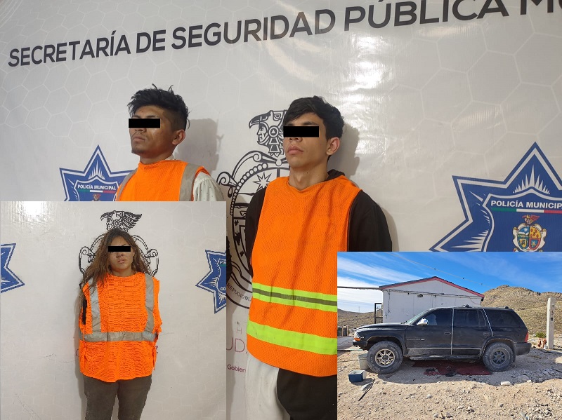 Ciudad Juárez, Chihuahua – Elementos de la Secretaría de Seguridad Pública Municipal arrestaron a tres personas por su presunta responsabilidad en la comisión del delito de posesión de vehículo con reporte de robo.