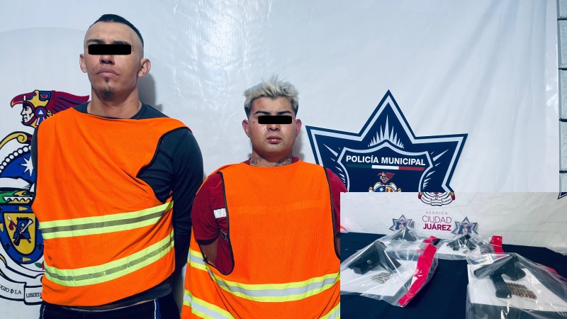 Ciudad Juarez, Chihuahua – Elementos de la Secretaría de Seguridad Pública Municipal arrestaron a Pedro Michell C. O., Joel Enrique N. O. y un adolescente, por su presunta responsabilidad en la comisión de delitos contra la ley federal de armas de fuego y explosivos, siendo detectado uno de ellos con una orden de aprehensión vigente en su contra.