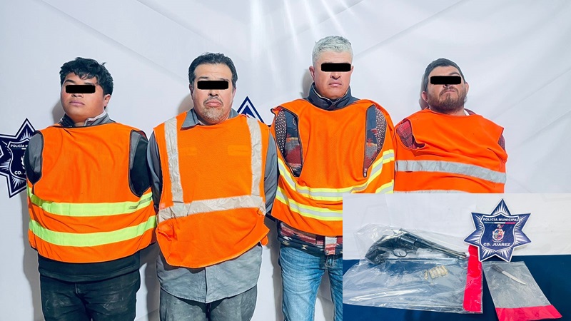 Ciudad Juarez, Chihuahua – Elementos de la Secretaría de Seguridad Pública Municipal arrestaron a Rubén S. T., Adolfo A. P. y Jaime C. V., por su presunta responsabilidad en la comisión de los delitos de allanamiento de vivienda y amenazas, así como la detención de Armando R. N. por delitos contra la ley federal de armas de armas de fuego y explosivos.