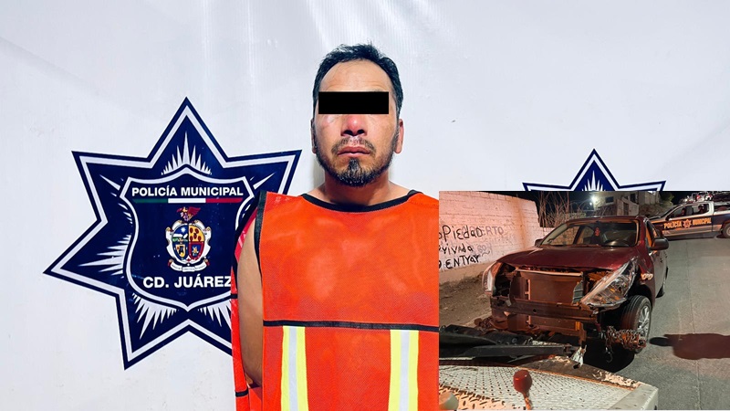 Ciudad Juarez, Chihuahua – Agentes de la Secretaría de Seguridad Pública Municipal capturaron a Mario Carlos E., por su presunta responsabilidad en la comisión de los delitos de daños, lesiones y desobediencia y resistencia de particulares.
