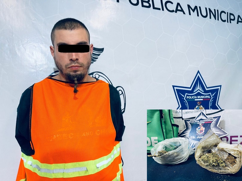 Ciudad Juárez, Chihuahua – Agentes de la Secretaría de Seguridad Pública Municipal arrestaron a Guillermo Armando B. C., por su presunta responsabilidad en la comisión del delito de violencia familiar y delitos contra la salud.