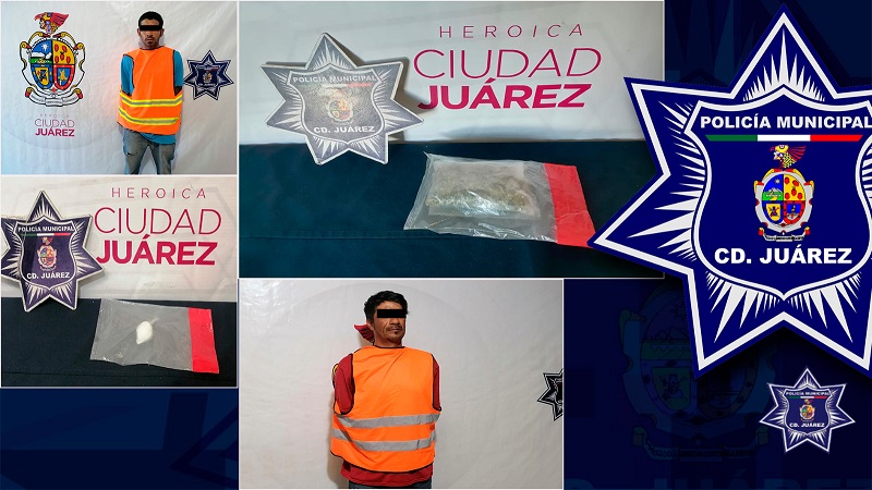 Ciudad Juárez, Chihuahua – Agentes de la Secretaría de Seguridad Pública Municipal capturaron a dos personas, por su presunta responsabilidad en la comisión de delitos contra la salud en su modalidad de narcomenudeo.