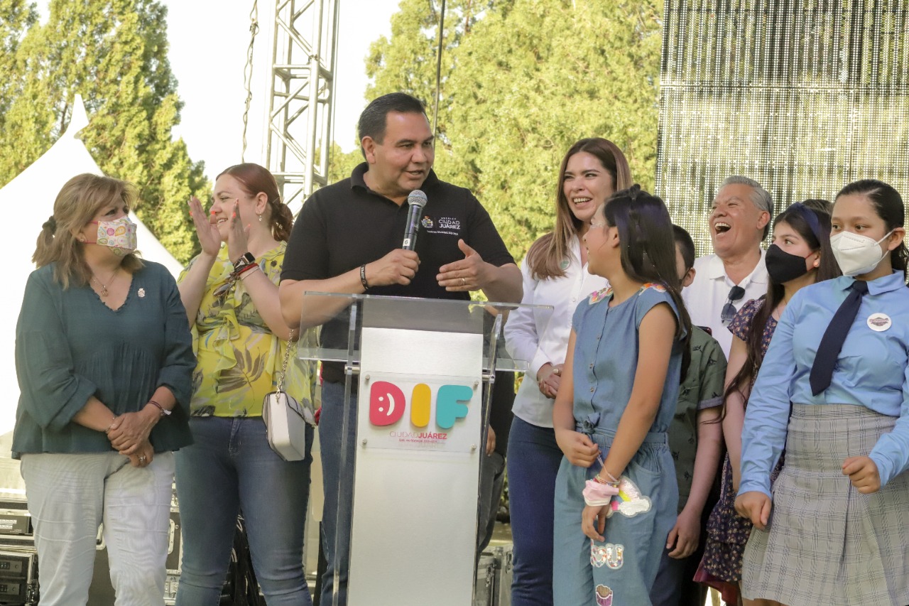 Ciudad Juárez, Chihuahua.- El Alcalde Cruz Pérez Cuéllar y su esposa Rubí Enríquez, Presidenta del DIF, declararon inaugurado el gran festejo en honor a las niñas y niños juarenses.