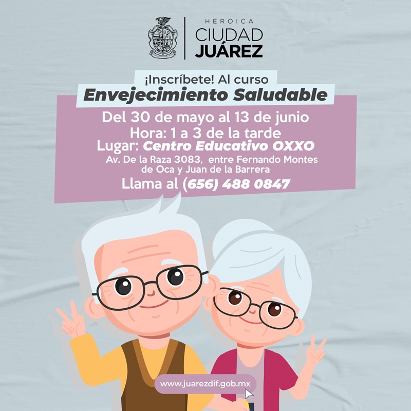 Ciudad Juarez, Chihuahua – Cuidar la salud y el bienestar de las personas mayores es la intención del curso “Envejecimiento saludable”, que se impartirá en el Centro Educativo OXXO, a partir de este jueves 30 de mayo.
