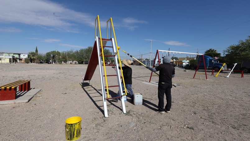 Ciudad Juarez, Chihuahua – La Dirección de Parques y Jardines trabajó en pintar y darle mantenimiento a los juegos infantiles en el parque del Fraccionamiento El Campanario, como parte de las acciones permanentes de mejoramiento de espacios públicos que impulsa el Gobierno Municipal.