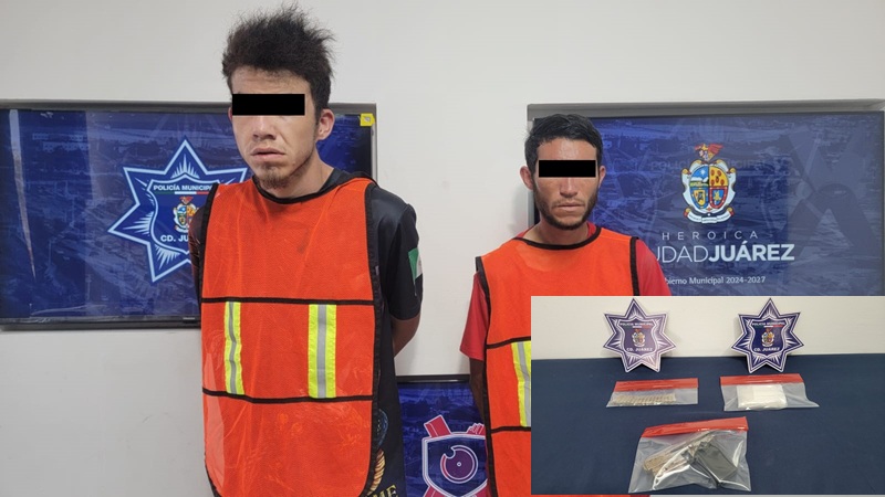 Ciudad Juarez, Chihuahua – Agentes de la Secretaría de Seguridad Pública Municipal capturaron a Jaime Alberto A. S. y Daniel Alejandro E. T., por su presunta responsabilidad en la comisión de delitos contra la salud y violación a la ley federal de armas de fuego y explosivos.