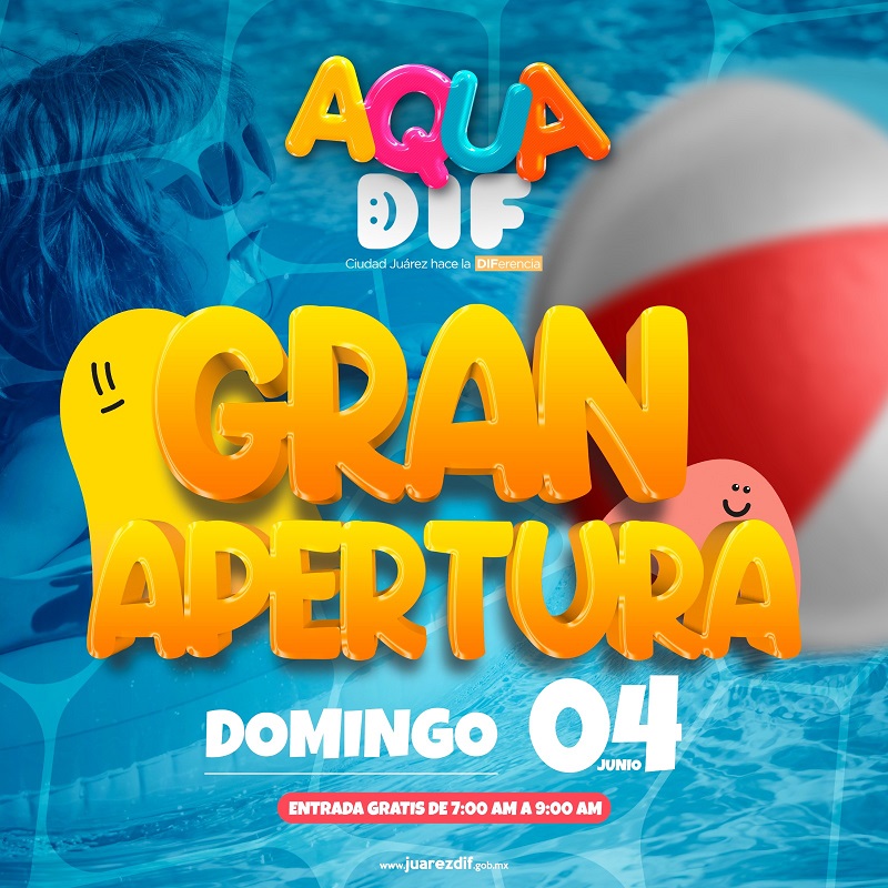 Ciudad Juárez, Chihuahua – El Sistema para el Desarrollo Integral de la Familia de Juárez (DIF), inicia la temporada de verano en el AquaDIF el próximo domingo 4 de junio a las 7:00 de la mañana, con grandes sorpresas, regalos y mucha diversión.