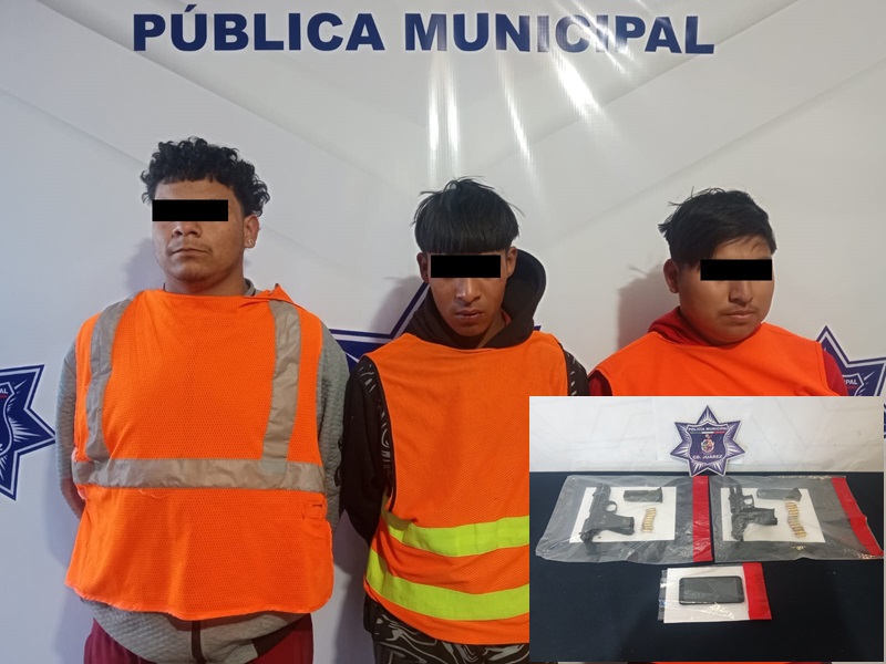 Ciudad Juarez, Chihuahua – Agentes de la Secretaría de Seguridad Pública Municipal arrestaron a Jesús Gustavo M. G., Noé R. L., Jerson P. R. y un adolescente de 15 años, por su presunta responsabilidad en la comisión de los delitos de secuestro y contra la ley federal de armas de fuego y explosivos.