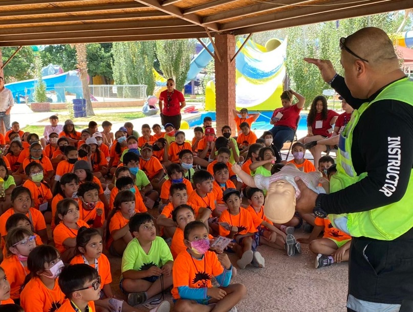 Ciudad Juárez, Chihuahua – La Dirección General de Protección Civil, a través del departamento de Rescate Municipal, participó en el campamento “Veraneada 2022”, el cual se está llevando a cabo en Mundo Acuático Anita, donde enseñaron técnicas de primeros auxilios, reanimación cardiopulmonar, así como dar a conocer el número de emergencia.