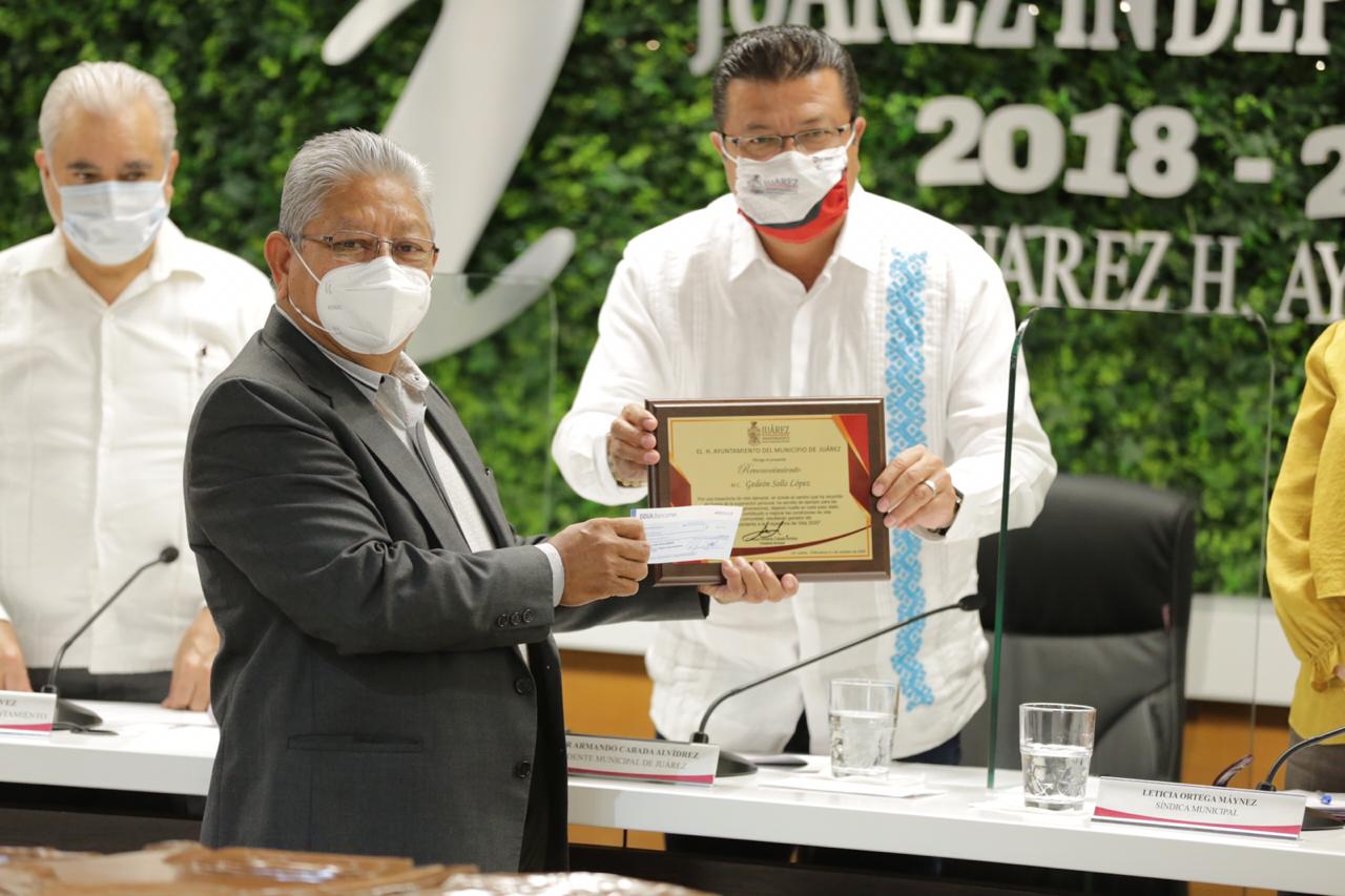 Lo anterior se llevó a cabo durante la Sesión 86 Ordinaria de Cabildo, donde el Presidente Municipal, Armando Cabada Alvídrez, entregó al homenajeado una placa y un premio por 30 mil pesos.
