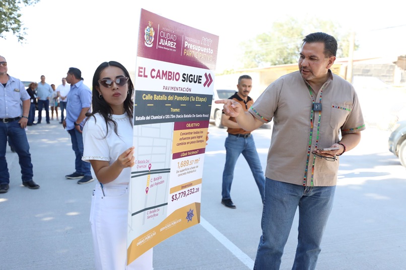 Ciudad Juarez, Chihuahua – Continuando con la rehabilitación de calles de la ciudad, esta tarde el Presidente Municipal Cruz Pérez Cuéllar entregó la rehabilitación de la calle Batalla de Paredón a los vecinos del sector de Colinas del Sur, obra correspondiente al Presupuesto Participativo 2023.