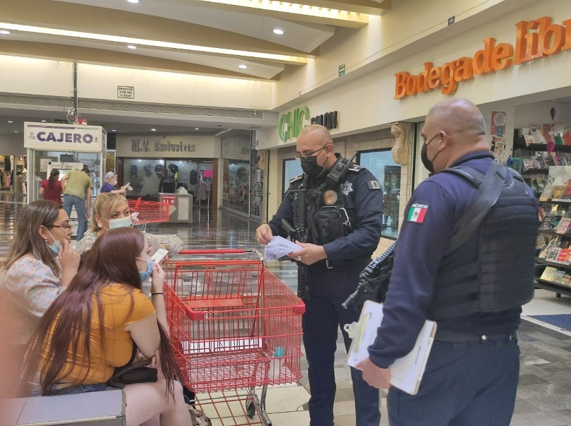 Ciudad Juárez, Chihuahua -Elementos municipales adscritos a la Dirección de Prevención Social de la Secretaría de Seguridad Pública Municipal, acudieron al centro comercial Plaza Juárez Mall en donde entregaron información preventiva.