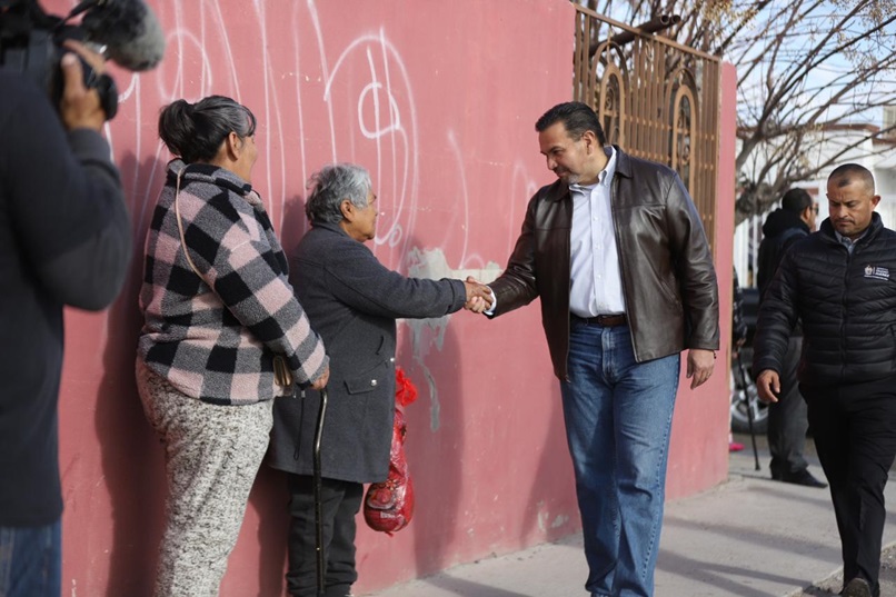 Ciudad Juarez, Chihuahua – El Presidente Municipal, Cruz Pérez Cuéllar, acompañado del personal de la Dirección General de Desarrollo Social recorrió las calles de los fraccionamientos Praderas de la Sierra y Praderas de Papigochi para entregar casa por casa piernas de puerco a las familias del sector.