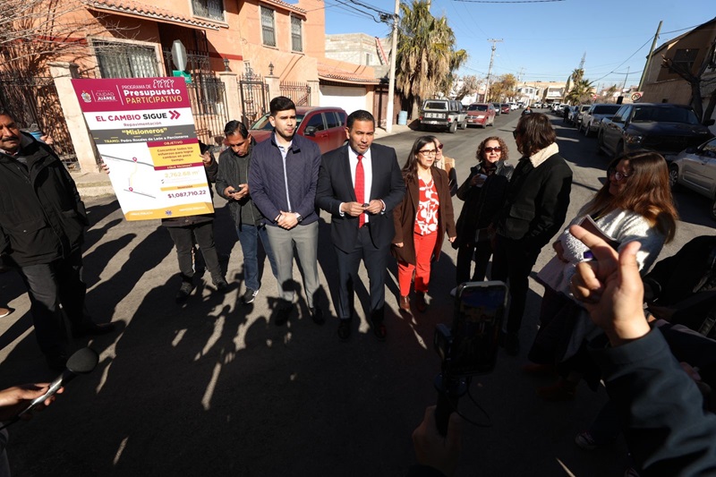 Ciudad Juarez, Chihuahua – Este día el Presidente Municipal, Cruz Pérez Cuéllar llevó a cabo la entrega de dos obras de repavimentación que ejecutó la Dirección General de Obras Públicas en las calles Colegio México y Misioneros.