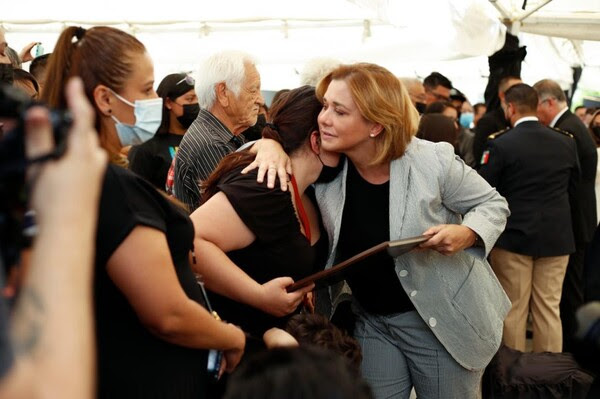 A los familiares de los agentes caídos les aseguró que no es tan solos, y que tanto ella como los miembros del Gobierno del Estado, están acompañándolos en su dolor y durante este duelo.