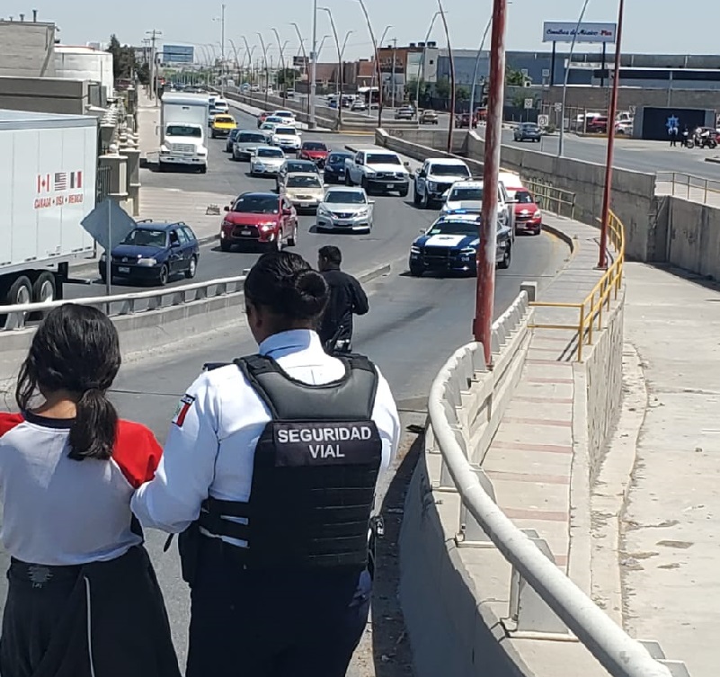 Ciudad Juárez, Chihuahua – Una unidad de Auxilio Vial que circulaba sobre Teófilo Borunda y el bulevar Óscar Flores, se percató de la presencia de dos jovencitas que aparentemente intentaban arrojarse del puente elevado, ubicado en dicho cruce, por lo que dio aviso a una unidad de Seguridad Vial que a su vez transitaba por esta zona.