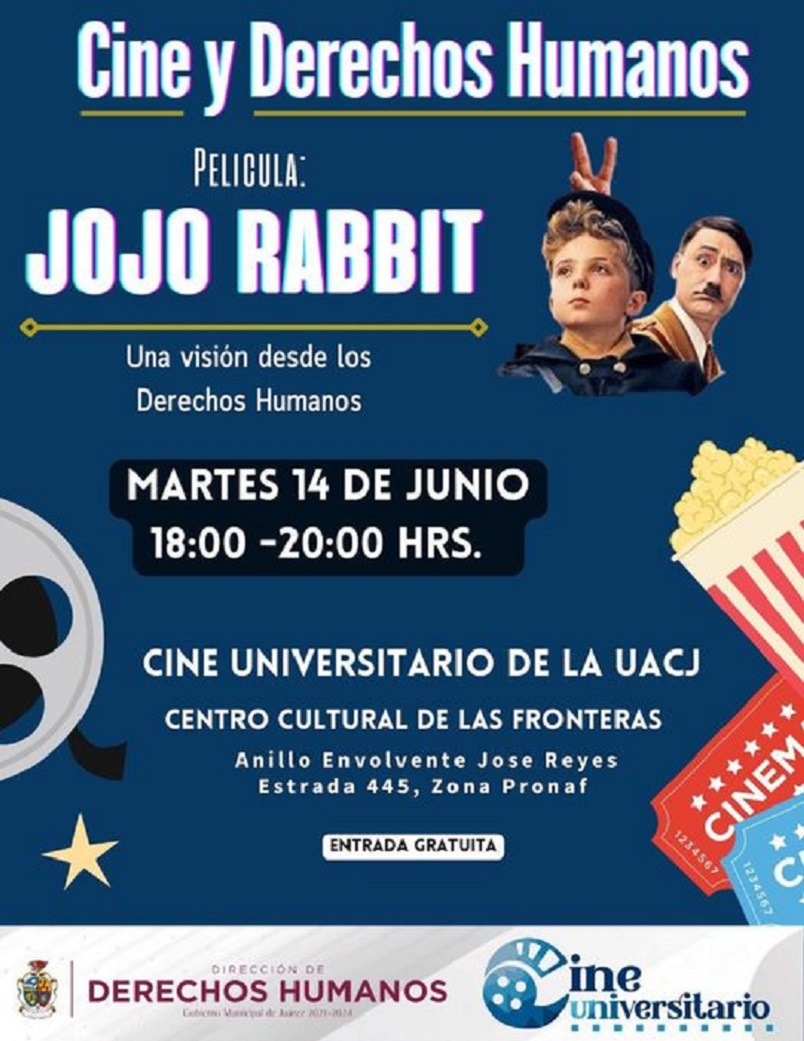 Ciudad Juárez, Chihuahua – La Dirección de Derechos Humanos del municipio invita a la población a la proyección de la película “Jojo Rabbit”, espacio que servirá para seguir difundiendo los derechos humanos, dio a conocer Santiago González Reyes, titular de la dependencia.