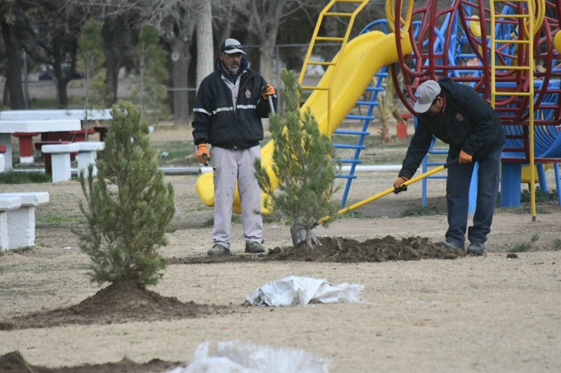 Ciudad Juarez, Chihuahua – Personal de la Dirección de Parques y Jardines plantó 40 pinos afganos en el parque El Chamizal, en la zona conocida como pozo cuatro, como parte de la estrategia para el mejoramiento del arbolado de este espacio, dio a conocer Daniel Iván Zamarrón Saldaña, titular de la dependencia.