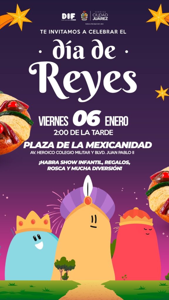 Ciudad Juárez, Chihuahua.- El Gobierno Municipal, Sistema para el Desarrollo Integral de la Familia y el equipo de fútbol Bravos de Juárez, organizan de manera conjunta un evento familiar en la Plaza de la Mexicanidad, para partir la rosca de “Reyes Magos”, el próximo viernes 6 de enero, a las 2:00 de la tarde.