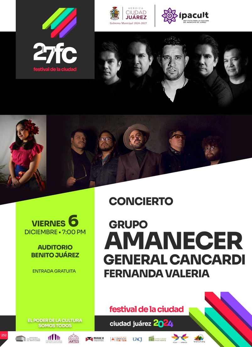 Ciudad Juárez, Chihuahua – Se prepara una velada inolvidable este viernes 6 de diciembre, cuando la agrupación “Amanecer”, uno de los favoritos del público, se presente en el marco de la edición 27 del Festival de la Ciudad.