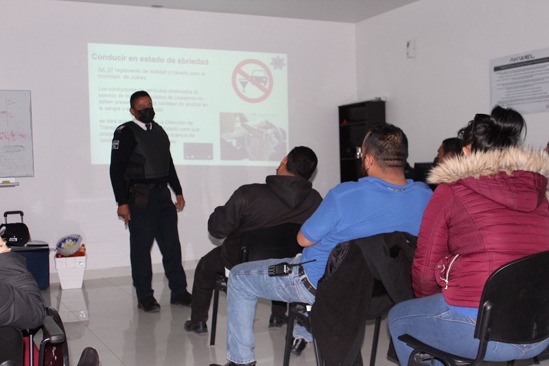 Ciudad Juárez, Chihuahua – La Coordinación General de Seguridad Vial, a través de la Escuela de Educación Vial, impartió este día el curso “Manejo Defensivo” a 13 choferes de transporte de personal, el cual se llevó a cabo en las instalaciones de la maquiladora Akwel.