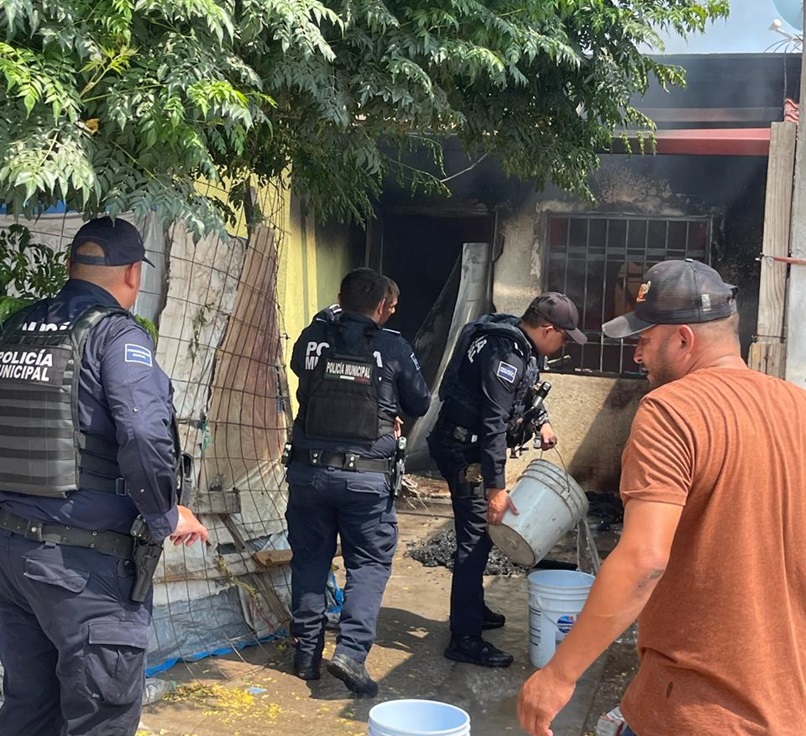 Los agentes actuaron de manera inmediata para ayudar a sofocar el fuego utilizando botes con agua, evitando con esto que la llamas se propagaran a casas aledañas, además, solicitaron la intervención del heroico cuerpo de bomberos.