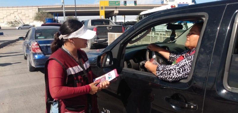 Ciudad Juárez, Chihuahua – Con el fin de socializar las obras que se llevarán a cabo con la construcción del distribuidor vial Talamás Camandari, personal de la Dirección General de Desarrollo Social, entregó volantes a los ciudadanos sobre las adecuaciones en el puente y las alternativas de circulación.