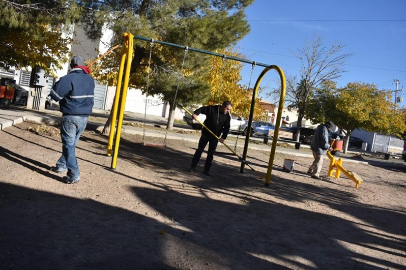 Ciudad Juarez, Chihuahua – Como parte de la estrategia para mejorar los espacios públicos, este día personal de la Dirección de Parques y Jardines trabajó en el Parque Chapultepec, ubicado en el fraccionamiento Los Parques, en donde se arreglaron los juegos infantiles y se trabajó en el arbolado.