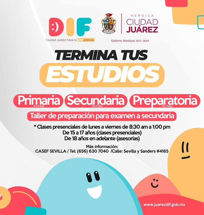Ciudad Juarez, Chihuahua – El Sistema para el Desarrollo Integral de la Familia del Municipio de Juárez (DIF) invita a los estudiantes a iniciar o retomar sus estudios de primaria, secundaria y preparatoria en el Centro de Atención Social y Educativo para las Familias (Casef), a través de clases presenciales que se desarrollan de lunes a viernes.