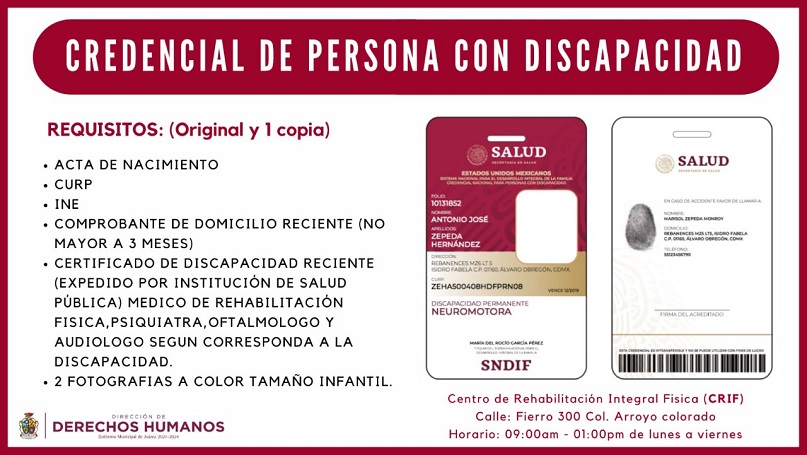 Las personas con discapacidad pueden presentar su documentación en la oficina de Derechos Humanos del municipio, que está ubicada en la planta baja de la Unidad Administrativa Benito Juárez (Presidencia Municipal).