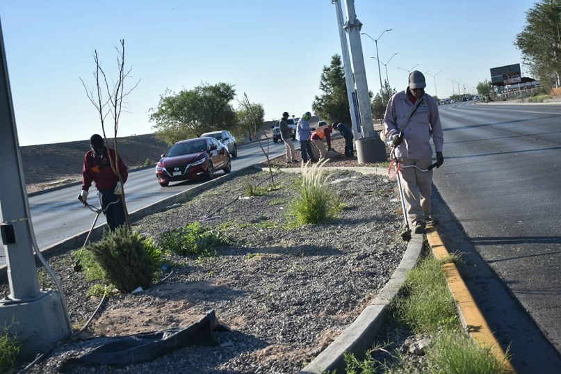Agregó que este lunes también se está trabajando en el camellón central de la avenida Ejército Nacional desde la Paseo de la Victoria hasta la Francisco Villarreal.