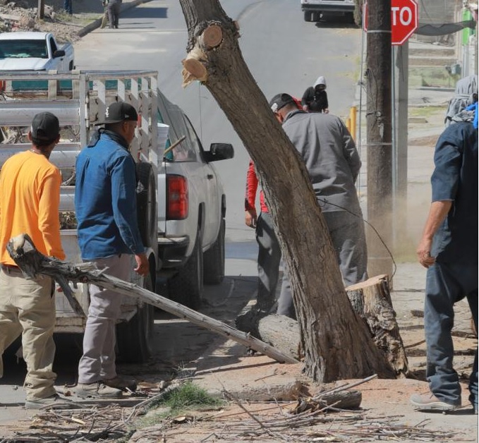 Trabajadores de la Dirección de Limpia, además de Parques y Jardines, se encargaron del barrido manual de calles, levantamiento de tierra de arrastre y cortaron maleza que se encontraba en la orilla de las banquetas con la ayuda de máquinas orilladoras. También podaron árboles y retiraron uno que se encontraba seco.