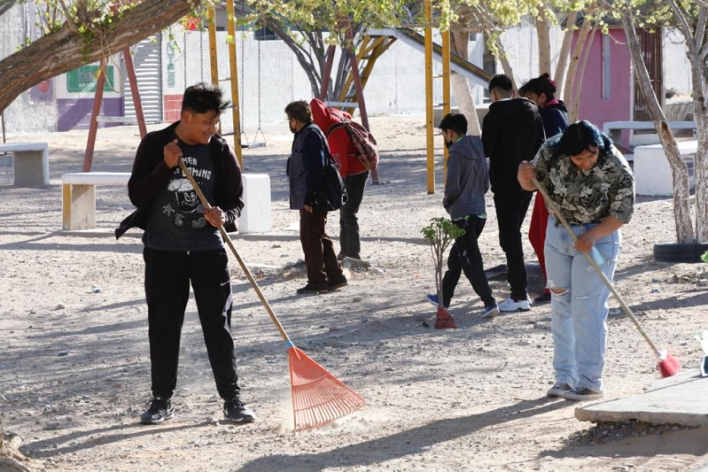 Trabajando de manera conjunta, este día cuadrillas de la Dirección General de Servicios Públicos Municipales, comerciantes del mercado Yepomera y habitantes de la colonia Haciendas Universidad limpiaron las calles del sector y el espacio que usan para las ventas.