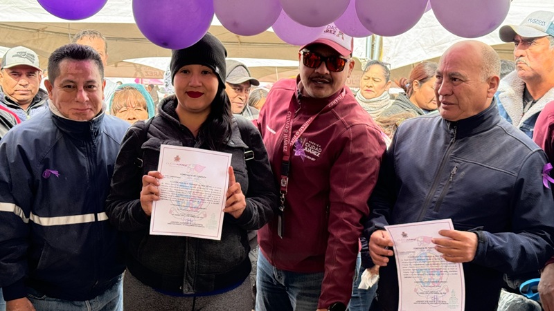 Ciudad Juarez, Chihuahua – La Dirección General de Asentamientos Humanos entregó más de 50 constancias de posesión a vecinos del Kilómetro 20, durante el desarrollo de la Cruzada por Juárez “Atención a las Causas, Ciudad Juárez por la Paz”.