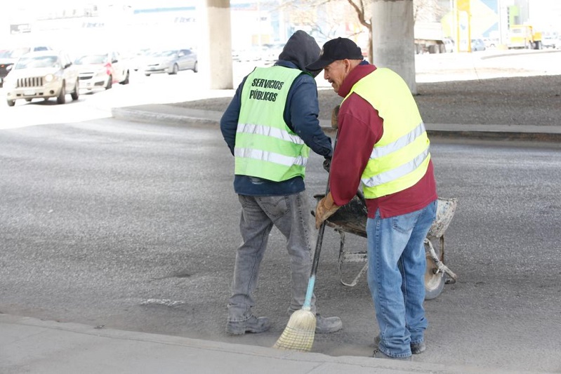 Ciudad Juárez, Chihuahua – Como parte de los trabajos efectuados de manera conjunta para la segunda Jornada de Seguridad y Paz que será mañana, la Dirección General de Servicios Públicos a través de sus diversas áreas, sigue trabajando en el mantenimiento del fraccionamiento Senderos de San Isidro y en las áreas cercanas.