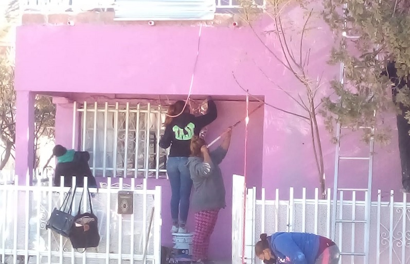 Ciudad Juárez, Chihuahua – Con la finalidad de impactar positivamente y mejorar la imagen en las colonias de la periferia, personal de la Dirección de Desarrollo Social y estudiantes de la Universidad Autónoma de Ciudad Juárez (UACJ), continúan pintando viviendas en la colonia Felipe Ángeles y en otras del norponiente de la ciudad.