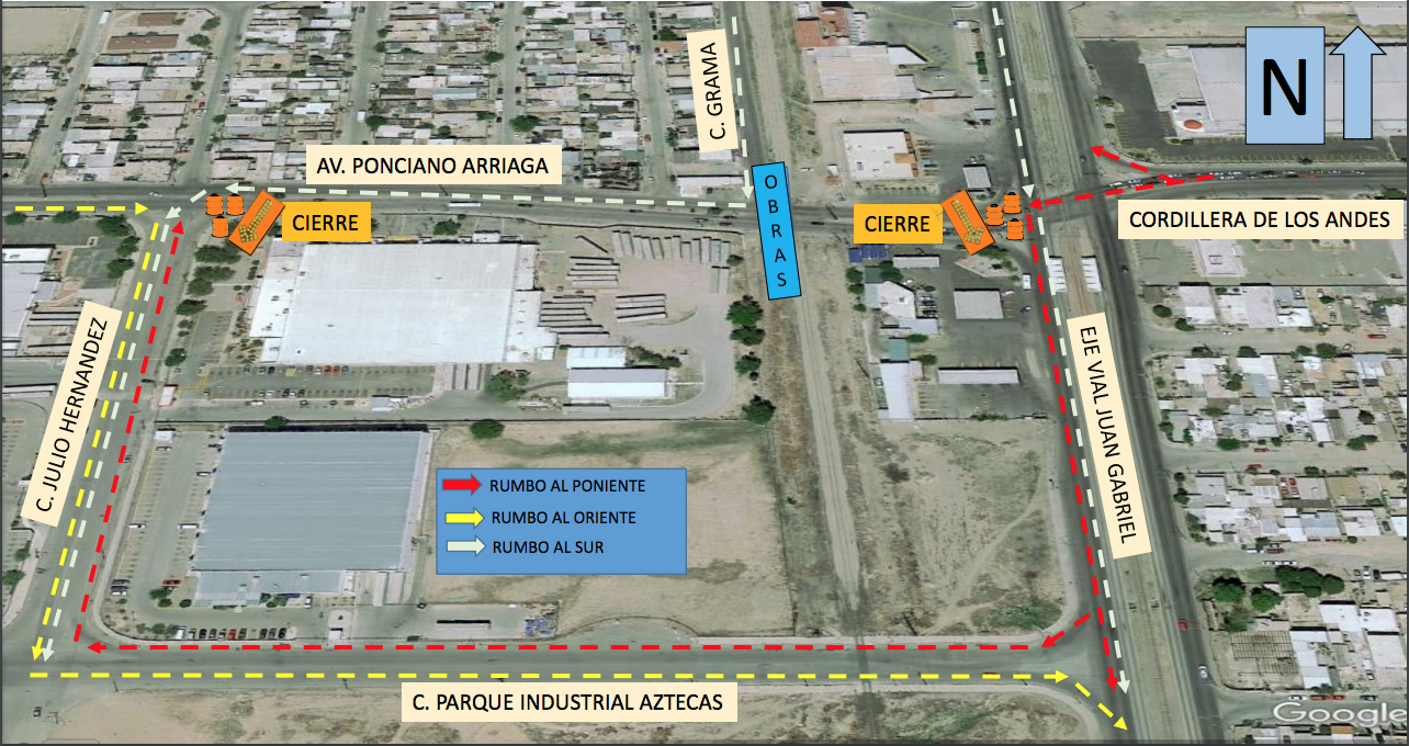Ciudad Juárez, Chihuahua – La Coordinación General de Seguridad Vial informa a la comunidad que el día de hoy será cerrado un tramo de la avenida Ponciano Arriaga, debido a trabajos que realizará FERROMEX en el lugar.