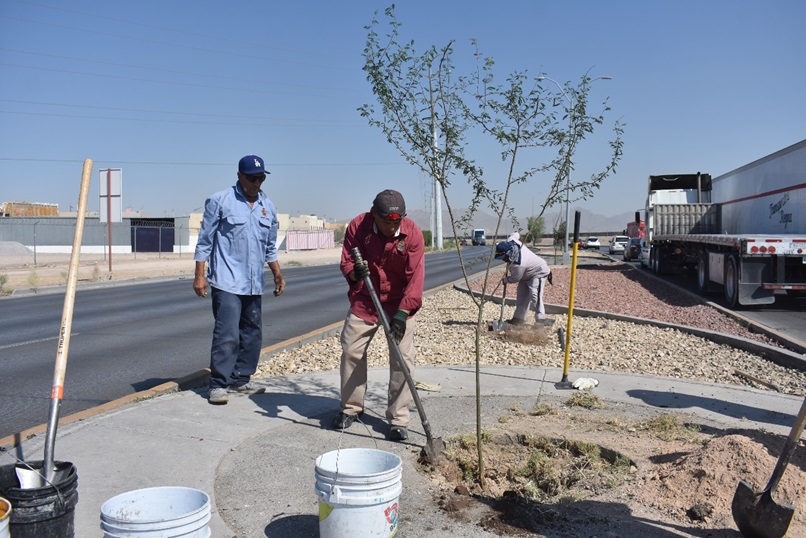 Ciudad Juarez, Chihuahua – La Dirección de Parques y Jardines trabajó en la forestación 35 árboles en el camellón central del bulevar Juan Pablo II, con el fin de mejorar el arbolado de la ciudad, dio a conocer Daniel Iván Zamarron Saldaña, titular de la dependencia.