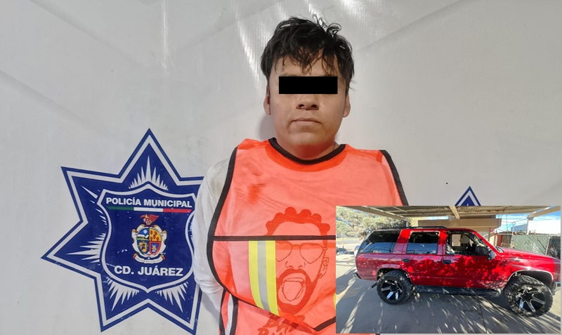 Ciudad Juarez, Chihuahua – Elementos de la Secretaría de Seguridad Pública Municipal arrestaron a Mario H. V., por su presunta responsabilidad en la comisión del delito de posesión de vehículo con reporte de robo.