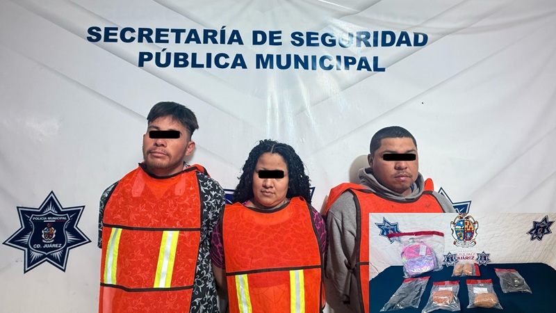 Ciudad Juarez, Chihuahua – Elementos de la Secretaría de Seguridad Pública Municipal arrestaron a Lucia Elena V. H., Luis Fernando B. D. y Francisco Javier A. O., por su presunta responsabilidad en la comisión de delitos contra la salud.