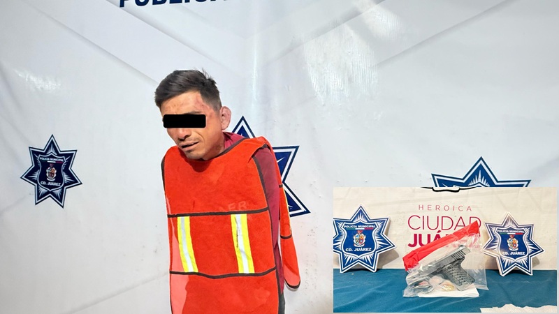 Ciudad Juarez, Chihuahua – Elementos de la Secretaría de Seguridad Pública Municipal, arrestaron a José Iván H. S., por su presunta responsabilidad en la comisión de delitos contra la ley federal de armas de fuego y explosivos, robo de vehículo con violencia y homicidio en grado de tentativa.