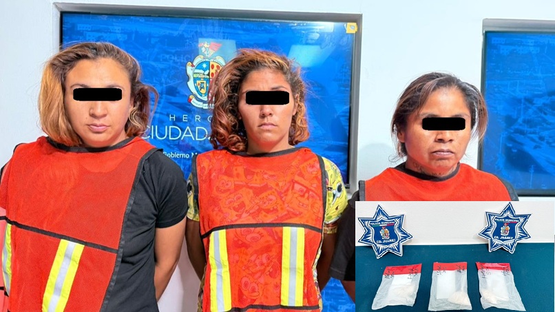 Al ser abordadas para hacerles saber que su actuar conlleva a una falta administrativa y que pasarían a ser presentadas a ante un juez cívico, se les realizó una inspección preventiva, localizándoles a cada una un envoltorio de plástico con cristal, con un peso aproximado a los 27, 25 y 23 gramos cada uno, razón por la cual fueron detenidas quienes dijeron llamarse Yajaira Carilina C. O. de 30 años, Esmeralda R. V. de 27 años y Gabriela Jazmín L. M. de 30 años.